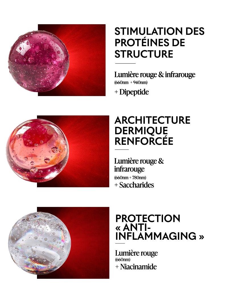 Associée aux sérums photo-actifs de grade médical et au massage tissulaire, cette technologie unique permet une réponse cellulaire amplifiée et mesurable, scientifiquement prouvée.
